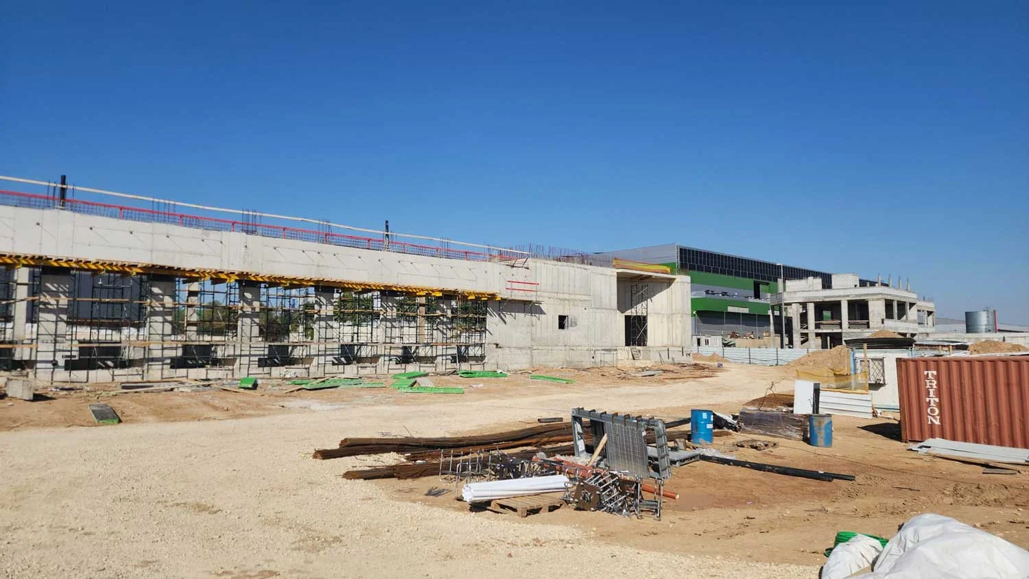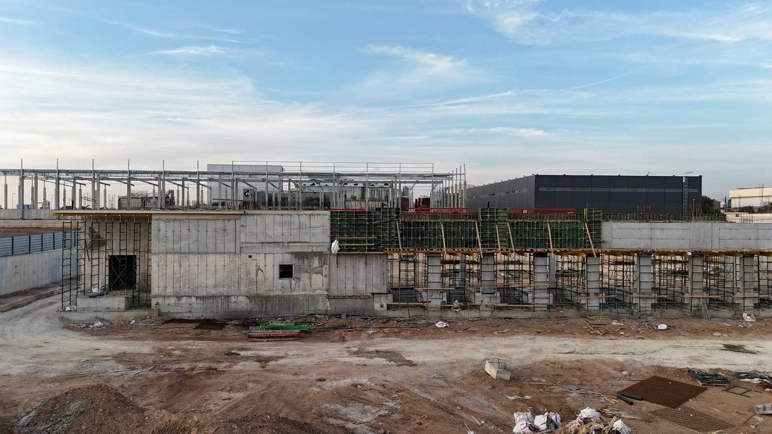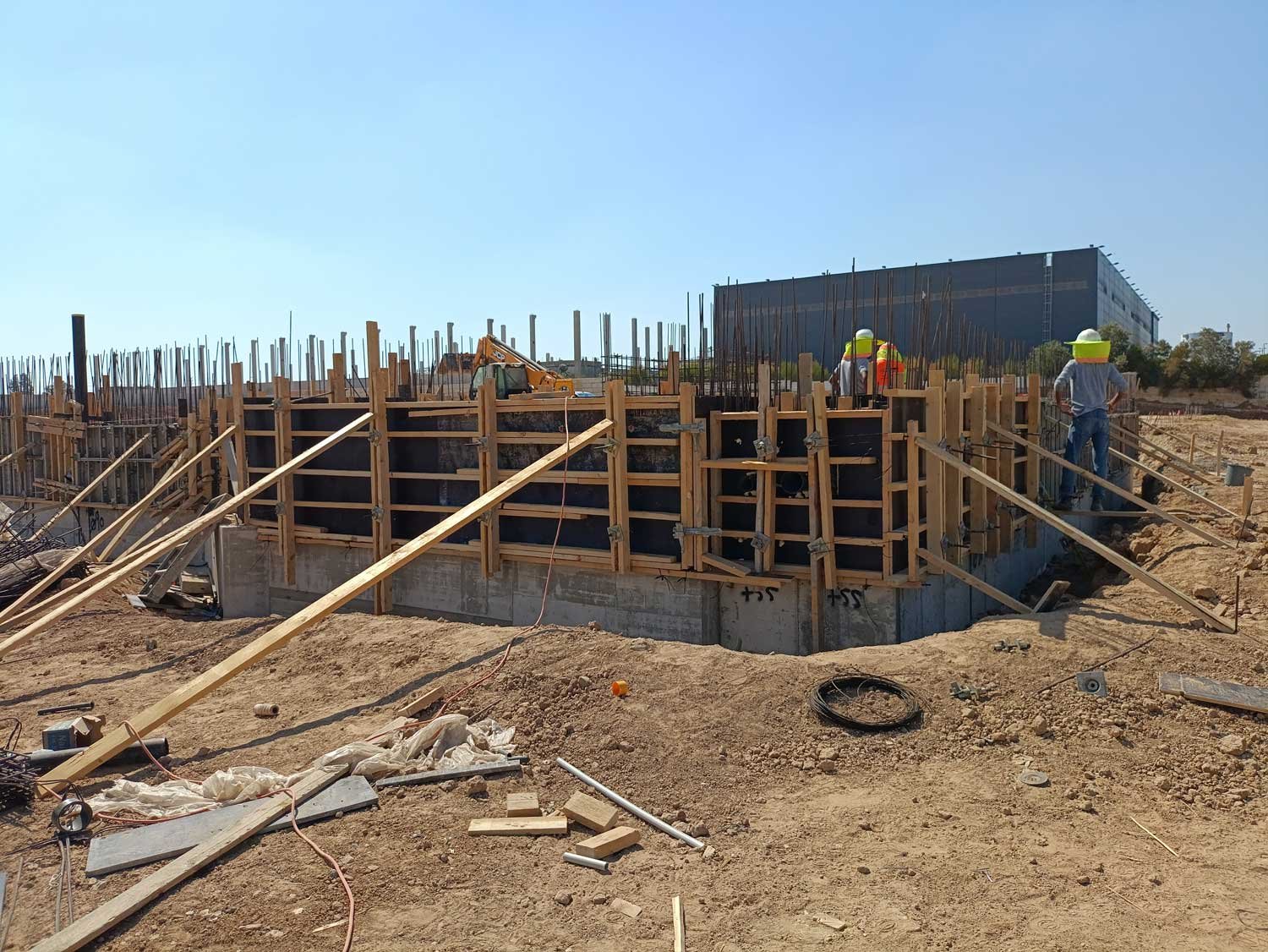 השילוב בין מעטפת הבטון החזקה לבין מסגרות הפלדה הפנימיות יצר מבנה עמיד ויציב, העונה על הדרישות הטכניות והבטיחותיות הגבוהות של מפעל כימי